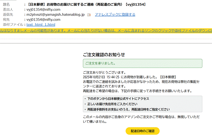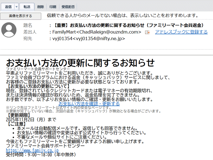 11.フィッシングサイト:2025年11月2日の着信した詐欺メール