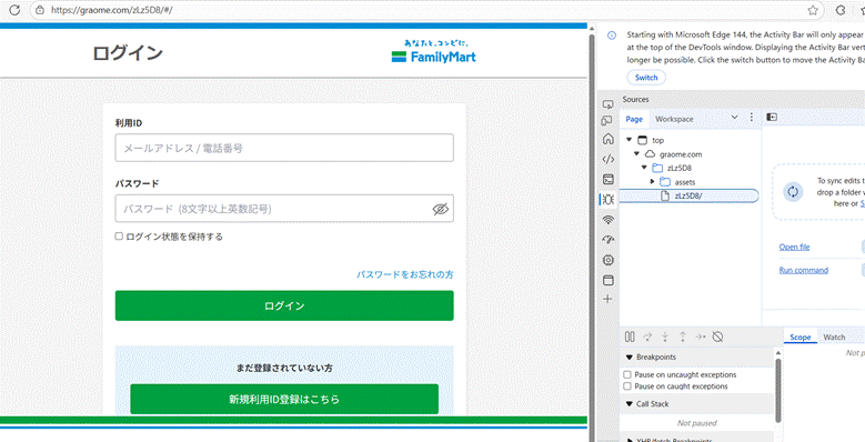 メールに記載されたURLの https://www.family.co.jpは https://gaome.com/zLz5D8にリンクされていた。